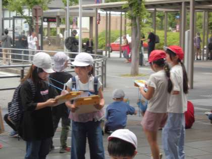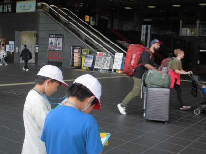 次は場所を変えて、タクシー乗り場付近を見学しました。たくさんの観光客や外国の方が多いことに改めて驚いていました。