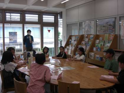 グループに分かれて、3Rについて学びます。ごみを減らすにはどうすればいいのかを、みんなで考えました。