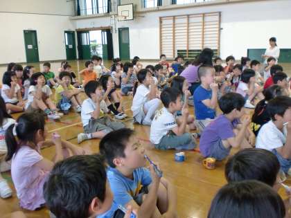 8日(金)2時間目に,歯科衛生士の先生から歯磨き指導をしてもらいました。2年生は去年に引き続き2回目,磨き方かもなかなか上手になっていました。毎日歯の裏側もきれいにきれいにシュッシュッ磨きます。