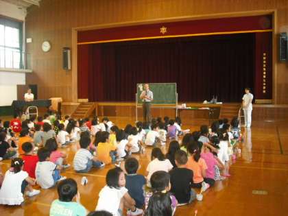 今日は3くみ・1・2年生を対象に歯科衛生士さんから、歯の磨き方を中心に歯の役割やおやつの食べ方などについて学びました。