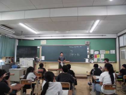 外国語の学習で夏休みの思い出を英語で紹介しました。友達に聞いてもらい練習をしていましたが、いざ本番になると緊張した様子ではいました。