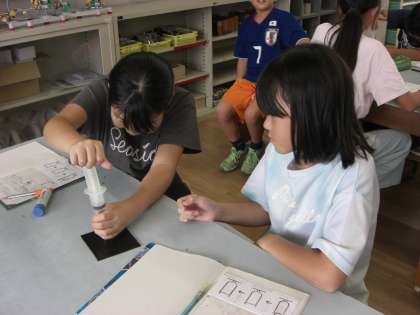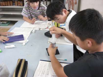 理科の「とじこめた空気や水」の学習の、2組の様子です。