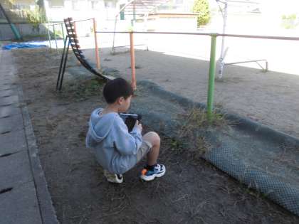 図画工作科で「草花のおしゃべり」の学習しました。学校内にある身の回りの草花たちを探しに運動場に行きました。「たんぽぽがさいてるよ。」「木の枝から新しい葉っぱがでているよ。」「枝が背比べしているみたい。」とたくさんの草花を見つけて端末で写真を撮りました。