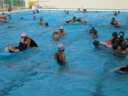 こんな日はやっぱりプールです。今日もたくさんの子どもたちがやって来ました。みんな気持ちよさそう!