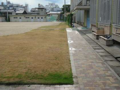 久しぶりに,そして待望の雨が降りました。わずかな時間でしたが,それでも待ち焦がれた雨!正門前にも水溜りが少しでき,芝生もしっとり。草花も元気を取り戻したように見えます。