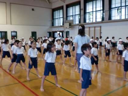 2年生は1年生と一緒に,「なるこおどり」をします。毎日体育館でリズムをとりながら,練習を繰り返しています。まだまだ右・左がごちゃごちゃになったり,手と足がばらばらになったりしていますが,少しずつ形になってきています。