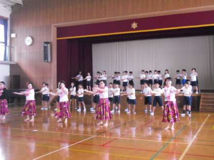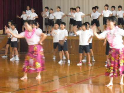 今日はフラダンスの練習の3回目。いよいよ体育館での仕上げです。