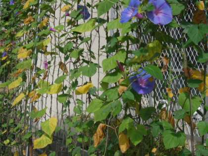 朝晩の気温が20度をきるようになりましたが,オーシャンブルーの花は次々と咲き続け,そこだけはまだ夏のようです。ただ,よく見ると,黄色い葉っぱが少しずつ増えてきています。やっぱり季節が秋に移っていることは確かなようです。
