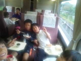 お昼にはちょっと早いけど,電車の中でお弁当タイムです。