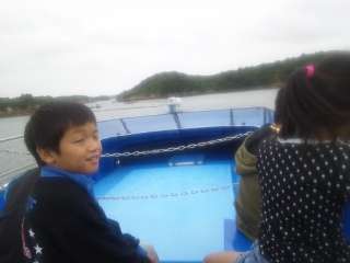 賢島に到着。電車を降りて,次は船に乗り込みます。目の前に英虞湾の景色が広がります。船上の風が気持ちよさそう!