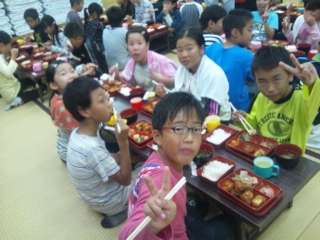 小雨の中,浦山ラリーを予定通り行い,お風呂に入ってさっぱりした後,夕食です。おなかがすいていたので,食欲旺盛な子どもたちでした。