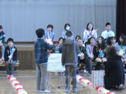 次は,各学年からの出し物です。歌や合奏,手づくりのプレゼント,そしてメッセージ。どれも心がこもっていて,胸が熱くなりました。