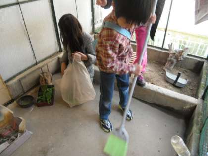 今日は飼育当番の子どもたちが3人とチョコを見に来た子どもたちが2人。