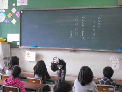 1組では,一人ずつ前に出て,自己紹介をしています。みんな大きな声で,しっかり言えました。
