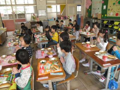 人気メニューの一つですが,1年生の子どもたちがぺろりと平らげたのにはびっくり!今年の1年生は食欲旺盛です。
