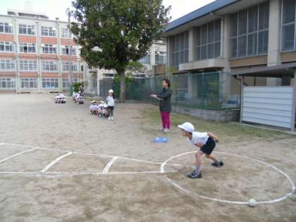 スポーツテストを行いました。昨年までは5・6年生だけでしたが,今年から1年生から6年生まで行うことになりました。ソフトボール投げでは,初めてソフトボールを投げる子も多い1年生,40メートル以上投げる子もいる6年生。6年間の成長を感じる場面でした。