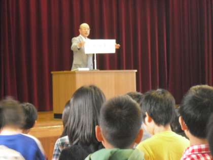 5月3日は憲法記念日,5月は憲法月間です。校長先生は,憲法にちなんだお話,その中でも特に基本的人権についてお話されました。
