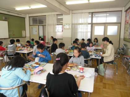 今日は4年生が栄養の勉強をしました。そのあと,ランチルームで一緒に給食を食べました。いつもの給食がおいしく感じられました。
