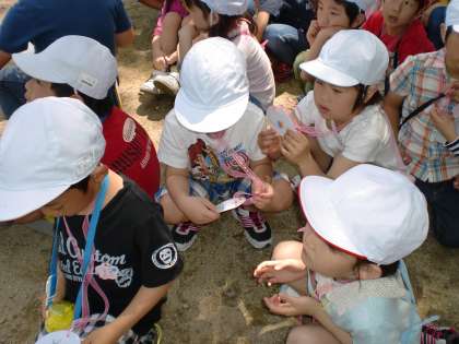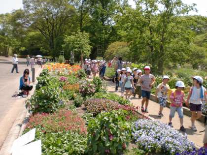 5月14日(火),はじめての遠足で,植物園に行って来ました。2年生と一緒に行きました。2年生とグループを組み,2年生の案内で植物園をウォークラリーしました。名前を書いたメダルをもらい,手を引いてもらってとても楽しそうな1年生でした。とっても暑かったのですが,電車の乗り降りもちゃんと出来,最後までしっかり歩きました。