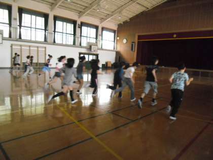 朝,体育館からシャトルランのリズムが聞こえてきます。6年生が,大文字駅伝に向けて練習をしているのです。