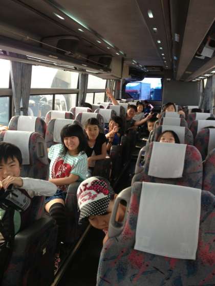 楽しいバスの旅が始まりました。 バスガイドの三村さんがキャラクター当てクイズをしてくれています。