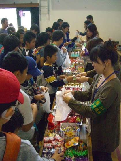 何と言っても子ども達の一番のお目当てはお菓子です。始まるなりお菓子コーナーがすごいにぎわいとなり,どれにしようかと迷っているかわいい様子が見られました。そして,お菓子を手にした満足そうな様子で,楽しそうに多くのゲームに次々と挑戦していました。
