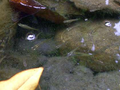 それから,「めだかの学校」の歌とともに,ひょうたん池のメダカの紹介もされました。このめだかは「クロメダカ」といって,今では珍しいものだそうです。メダカの泳ぐ様子を見ながら「めだかの学校」を歌って,作者の思いにふれてみるのも楽しいですね。