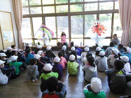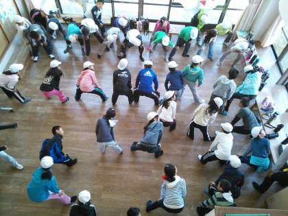 そのあと,朱七校だけの朝の集いで,元気に体操をしています。
