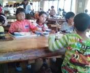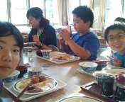 さあ,楽しみにしていた夕食です。山登りのあとで,みんなおなかペコぺコ,ものすごい食欲です。