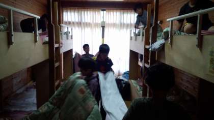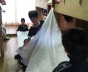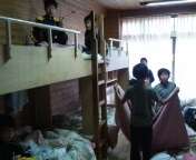 最終日の朝は,寝具の後片付けと荷物整理から始まります。3日間の共同生活で,子どもたちは自然と協力し合っています。