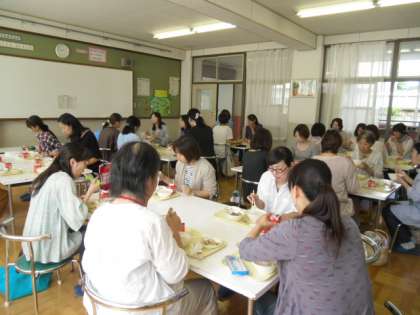 栄養教諭の平野先生から,学校給食についてお話を聴いた後,教室で子どもたちの給食時間の様子を参観していただきました。