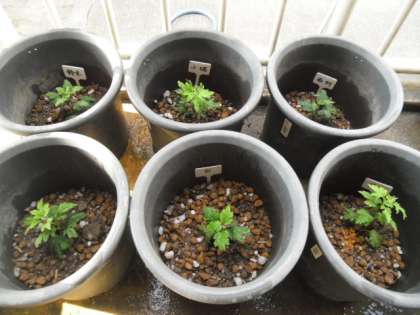 というわけで,3人の女の子たちといっしょに鉢上げをすることになりました。それぞれ好きな色を選び,一人一鉢,菊の苗を植えました。