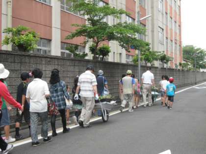 咲き終わった草花を取り除き,土と肥料を混ぜてから,サルビア,日々草,ポーチュラカ,ホウセンカ,ベゴニアなど持っていった花の苗を植えていきました。