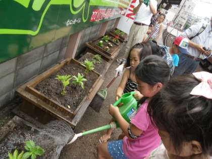 最後に雨水タンクの水をやって,終了。夏には色とりどりの花が,乗客の皆さんの目を楽しませてくれることでしょう。