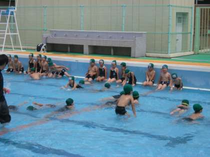昨日から低学年の水慣れ週間が始まりました。毎日暑いので,水が気持ちいいね。