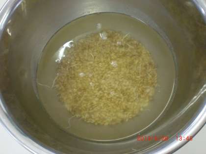 田植えの時に一緒に学習した種もみの温湯消毒。2日ごとに水をかえながら,種もみを水につけておくと,60度で温湯消毒した種もみからは根が出てきました。80度のほうはほとんど変化がありませんでした。やはり,温湯消毒は60度が適していることが分かりました。