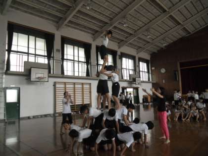 高学年は,まだ体育館ですが,タワーの完成まできています。