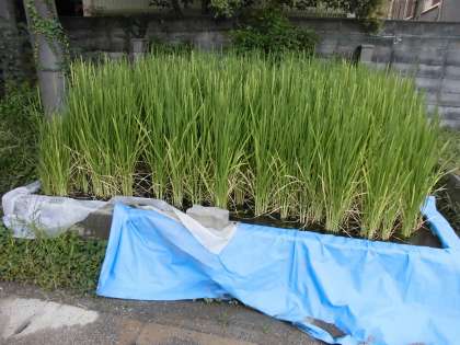 夏休み中も水の管理を続けてきた稲ですが,ぐんぐんと成長を続け,先週には穂が出てきました。そして,この週末で多くの穂から花が咲きました。「満開」といっても,とても小さな花なので,見た目は派手ではないですが,近づいて見てみると,かわいらしい花が咲いています。このまま順調に育ってほしいです。