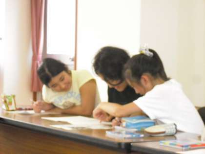 今日はその仕上げ,記事の見出しづくりです。担当した記事ごとに分かれ,見出しを考え題字を書きました。