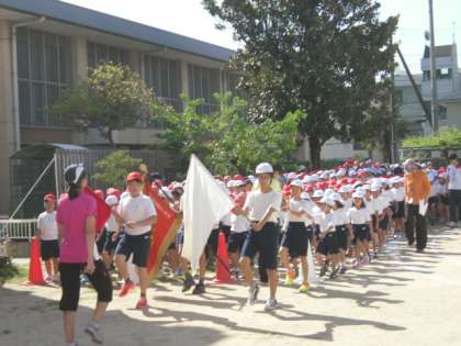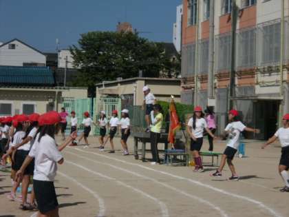まず,入場行進から。続いて,開会式の練習をしました。ダンス係は前でしっかり見本を見せてくれました。