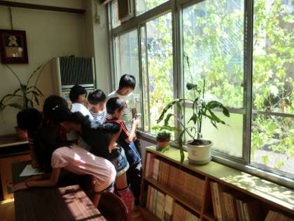 9月20日(金),6年生が緑のカーテンの働きについて学習していました。