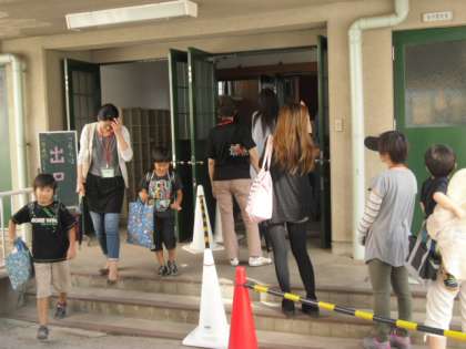震度5以上の大きな地震が起こった時は,子どもたちは下校せず,保護者の方のお迎えを待つことになります。今日は,その際の引き渡しの訓練を行いました。