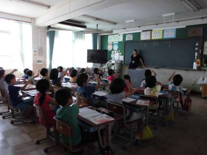 「いち,にぃい、さ〜ん・・・」と声を合わせながら漢字の書き順を学習している声が聞こえてきます。ひらがな・カタカナの学習が終わり,漢字の学習が始まりました。これからたくさんの漢字を覚えていかなければなりません。大変ですが,意欲にあふれている1年生です。この気持ちをずっともち続けてほしいです。