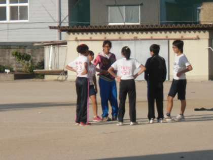 朝から運動場で軽くアップした子どもたち,7時半に元気に出発していきました。