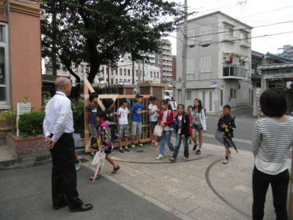 今日はこころの日なので,朝校門では児童会の子どもたちがあいさつ運動を行いました。