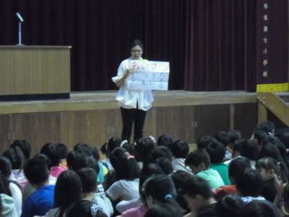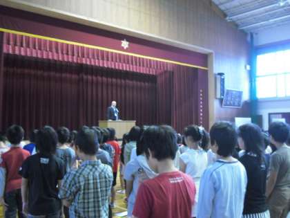 始業式では,校長先生が「あいさつ,そうじ,‘〜さん”づけ」についてお話しされました。