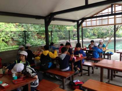 広い野山を駆け回ったので,おなかがすきました。お昼は,野外炊事場で食べました。