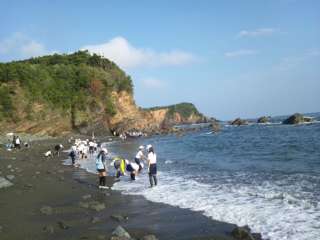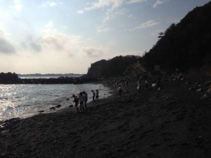 いよいよ磯観察。行きは悪かったお天気も,浜に着いたら晴れてきました。