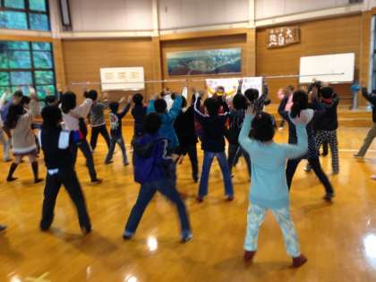 朝の体操では,みんな元気いっぱいダンスを踊りました。