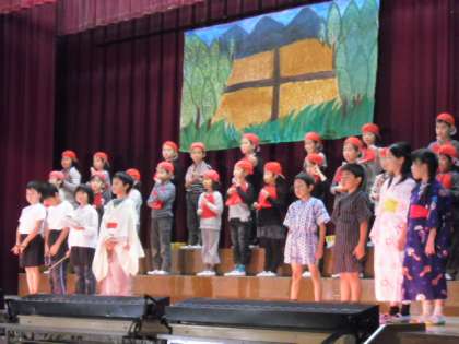 可愛いお地蔵さんがずらりと並んだ舞台で,楽しいお話が発表できました。